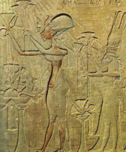 In the 18th dynasty however, Egyptian art changed drasticly under the rule of Ankhenaten. No longer did the painters have to follow a code but were free to show the pharaoh and his subjects as they realy were. Ankhenaten was shown with wide hips and thighs, long fingers and toes and a unusaly long facial features. The Pharaoh did not try to hide these, what the Egyptians thought of as ugly features, but actually emphasised these features, made his fingers and toes even longer and his hips and thighs even wider and he even gave himself breasts.